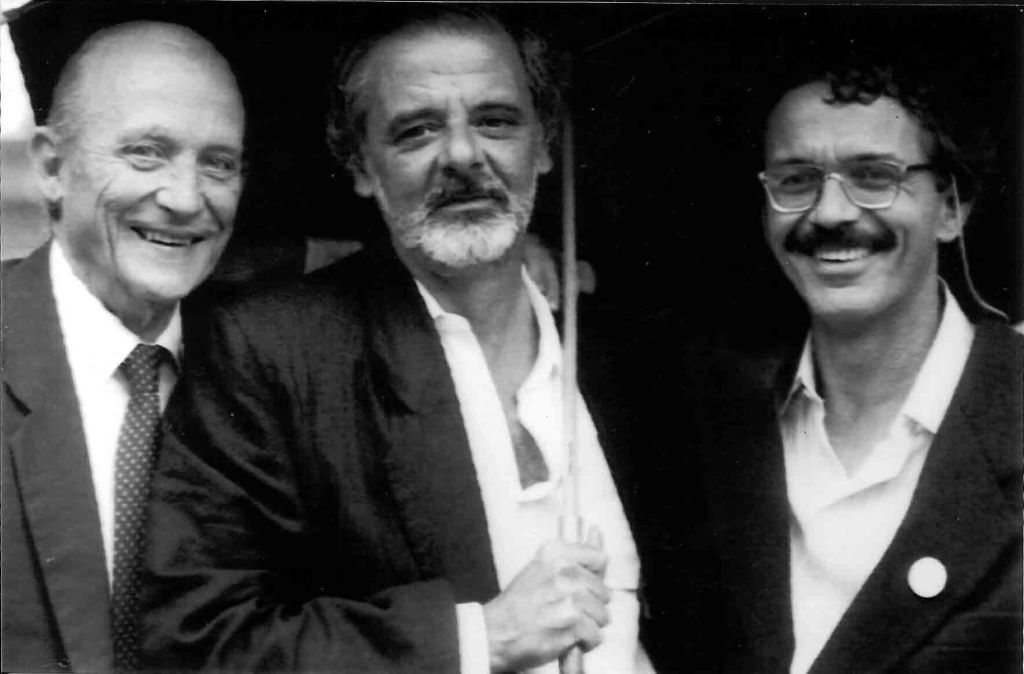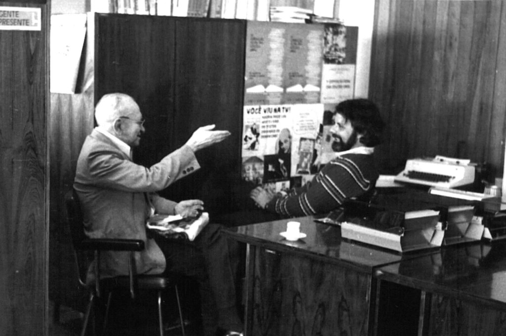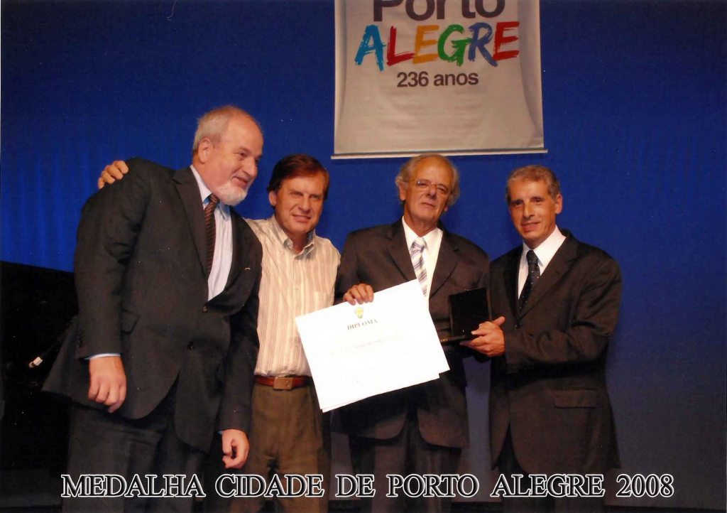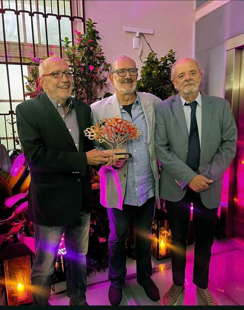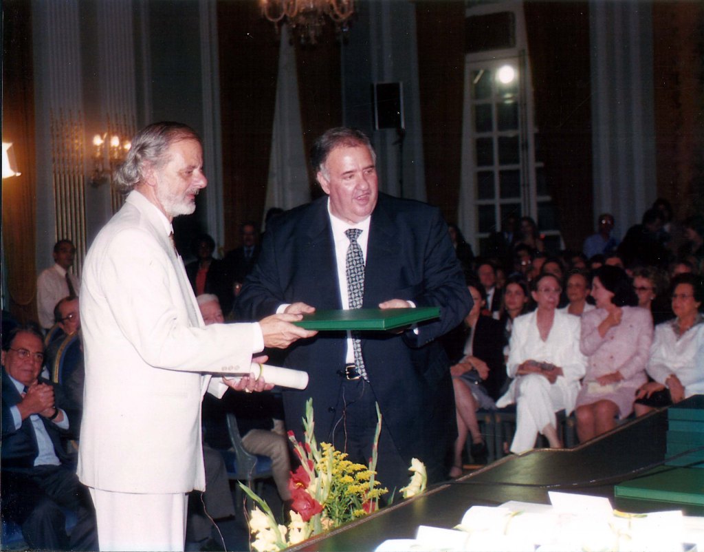 Em 2024, o Patrono da 70ª Feira do Livro de Porto Alegre recebe a chave do evento das mãos do patrono anterior, o romancista e cineasta Tabajara Ruas. Foto de Ricardo Giusti.